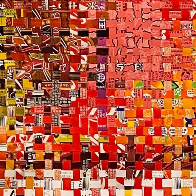 The work invites viewers to see beyond the surface of consumerism, where discarded materials are given new life in this reflective tapestry. Every strip, once part of a utilitarian object, now serves a deeper narrative of renewal, much like the way autumn clears the land for winter, yet offers fleeting moments of stunning beauty. Each woven piece, intertwined in the work, mirrors the complexity of nature — leaves falling, lights fading, and the crisp bite of autumn air that Japan’s countryside so famously offers.